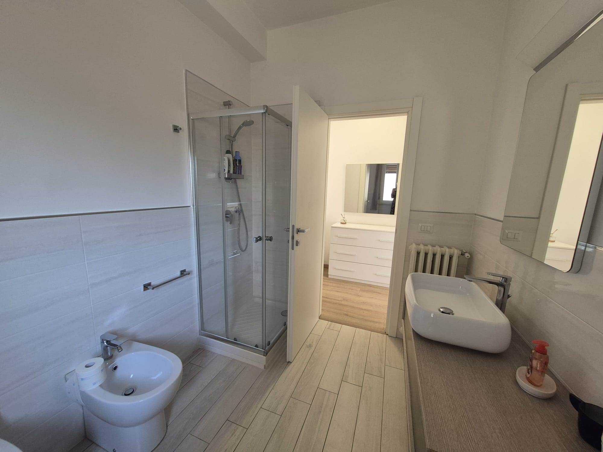 Un terrazzo con vista regala momenti di puro relax, mentre il posto auto privato e la cantina completano un’abitazione dove comfort e stile si fondono in perfetto equilibrio.